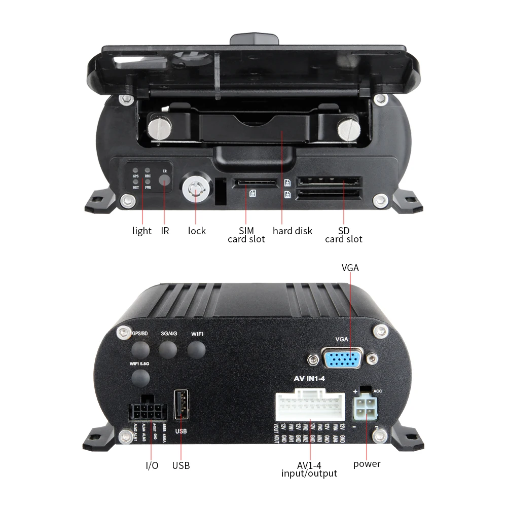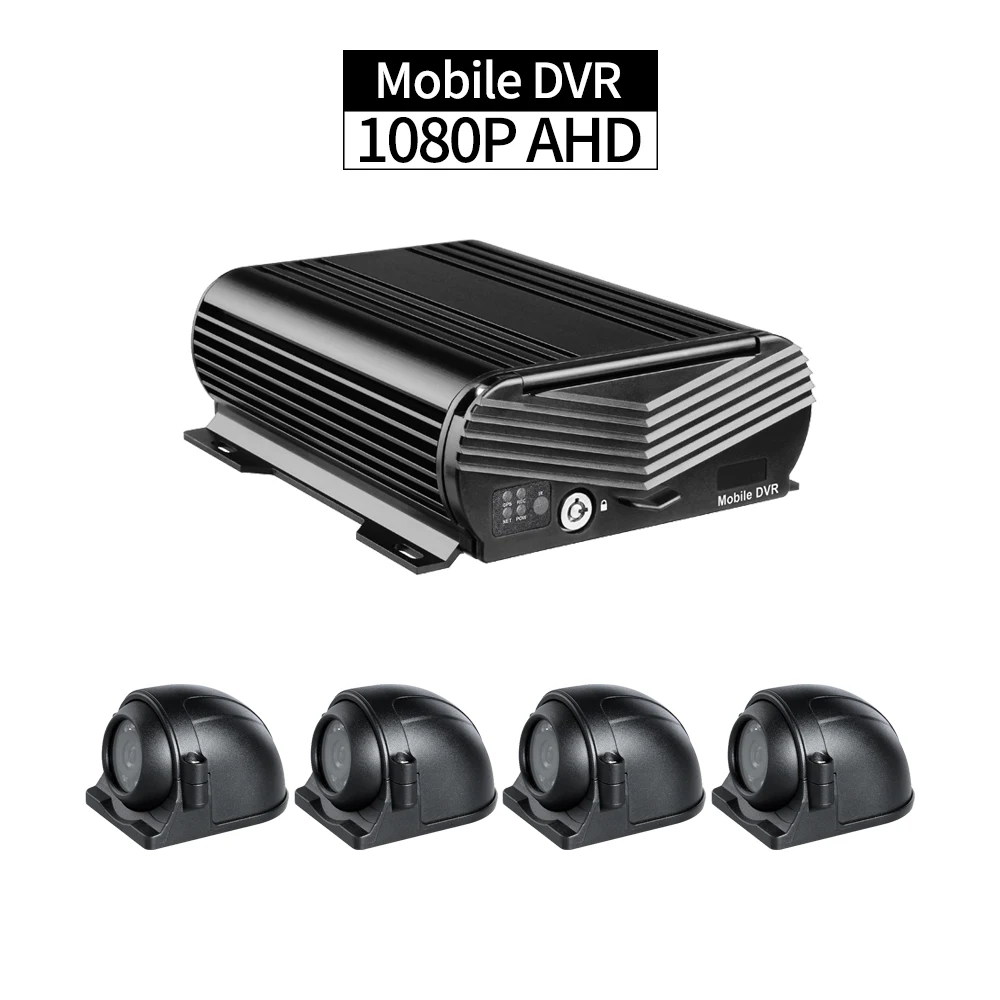 4 Channel AHD Car DVR Recorder with 4PCS Outdoor 2.0MP Cameras 2TB HDD Cycle Recording I/O Alarm fo
